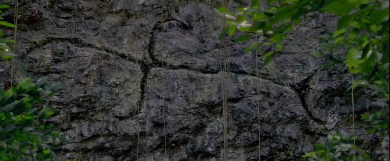 At some point in its longtime existence, the Fountain of Youth was discovered by humans who built a temple around it. The Fountain had since been taken over by natural growth, in which it would become a ruined stone temple, with vines growing around it, pulling it down and tearing it apart.[2]Within this sacred chamber, exotic creepers and clinging moss covered ancient skeletons that littered the stone steps, and a delicate stream of enchanted water flowed through a natural stone circle at the center of the temple. An archaic symbol would at some point be used as the symbol of the Fountain of Youth, in which it would be carved at the cave entrance of the Fountain as well as being written on the few maps and guides that led to the Fountain.[1]