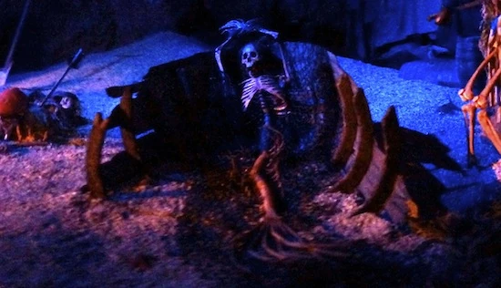 scene with skeletons on a beach, where a mermaid skeleton can be seen. An audio